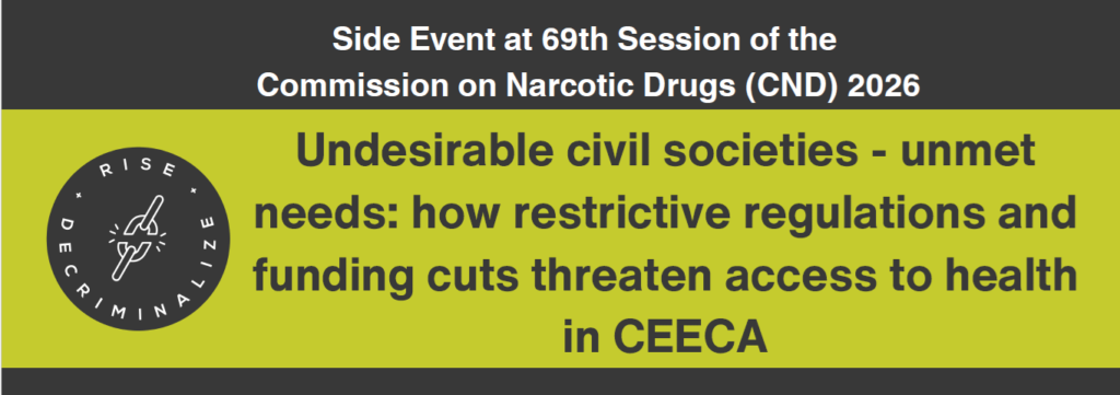 An increasing number of countries in Central Eastern Europe and Central Asia (CEECA) region are introducing laws and practices restricting civic freedoms and narrow the space for independent civil society actions – such as “foreign agent”-type legislation, ban of so-called “LGBTQI+ propaganda” and “drug propaganda” or banning health care for all marginalised groups – for trans people, LGBTIQ+ or total prohibition of harm reduction. These measures impose additional legal, financial, and administrative pressures on organizations providing health and social care to highly criminalized and stigmatized populations, as people who use drugs in all its intersecting diversity, including LGBTQI+ communities, people living with HIV, sex workers. The situation is further aggravated by a massive cut in international and domestic funding for civil societies, driven by geopolitical instability, donor concerns about supporting organizations operating under “foreign agent” laws, and the freezing and termination of key sources of aid such as USAID.
